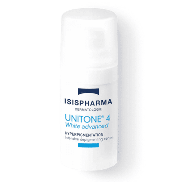 Isispharma Unitone 4 Depigmenting Serum is an intensive night treatment formulated to visibly reduce dark spots, hyperpigmentation, melasma, and uneven skin tone. Designed to target pigmentation at multiple stages, this advanced serum helps fade existing discoloration while limiting the formation of new dark spots.
